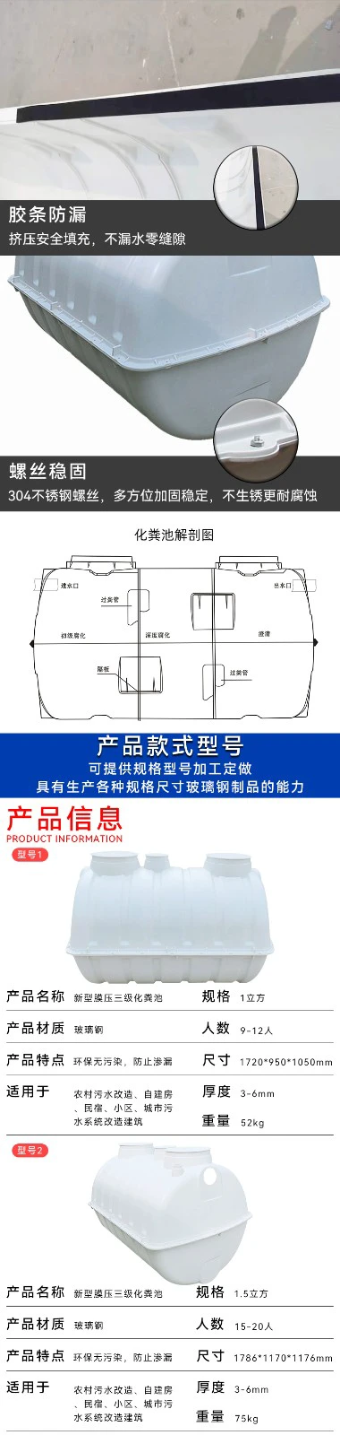 2) 三格池的深度相同,且不应小于 1000mm。池内挡板宜采用卡槽等形式与池体牢固、密封连接,确保化粪池内部各池之间无渗漏。