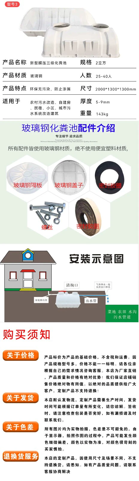 4) 过粪管用于紧密连接三格化粪池,并确保粪液顺畅流通。